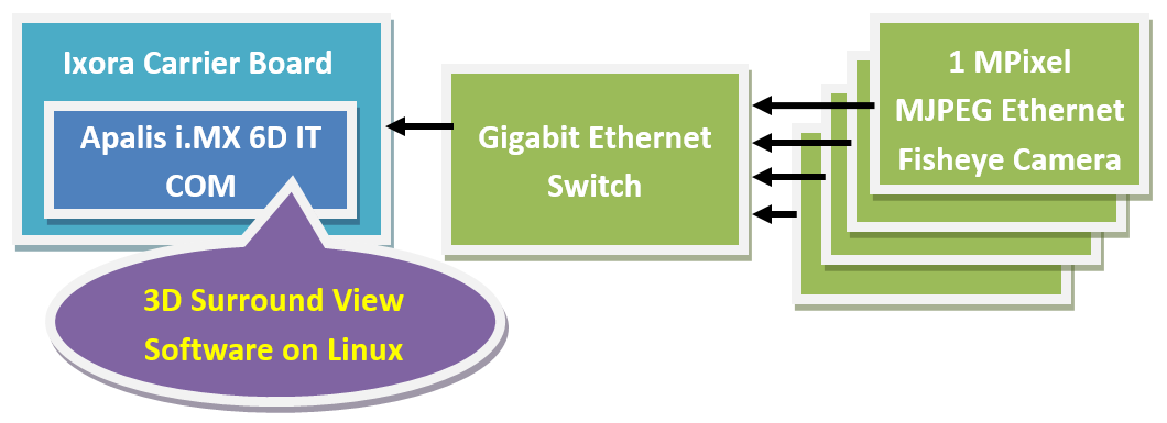Ready to use 3D Surround View System solution with 4 Ethernet cameras.